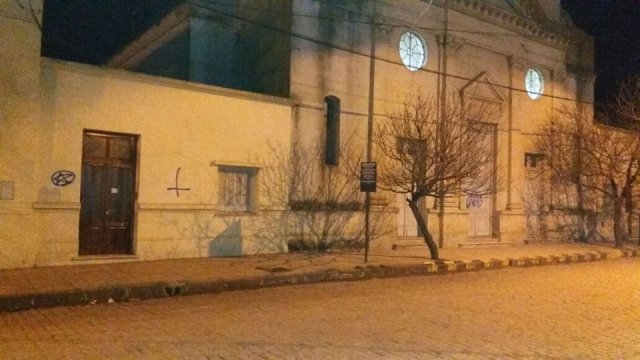 Pintaron autos, edificios públicos y hasta la parroquia local de Pringles.