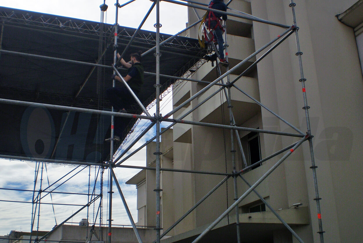 De momento el armado de la estructura no se extiende hacia la calle, al menos no hasta el punto de tener que cortar el tránsito para poder completar el armado.