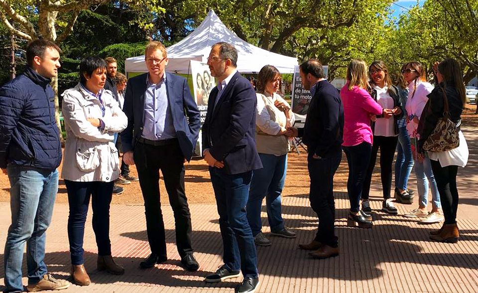 Foto: Suárez dialogando con representantes locales de Cambiemos.
