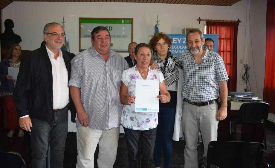 Los trámites de escrituración había sido iniciados meses atrás, cuando Fisher era intendente. El documento les permite ahora a los vecinos ser poseedor en dueño indiscutible del lugar que habitan.